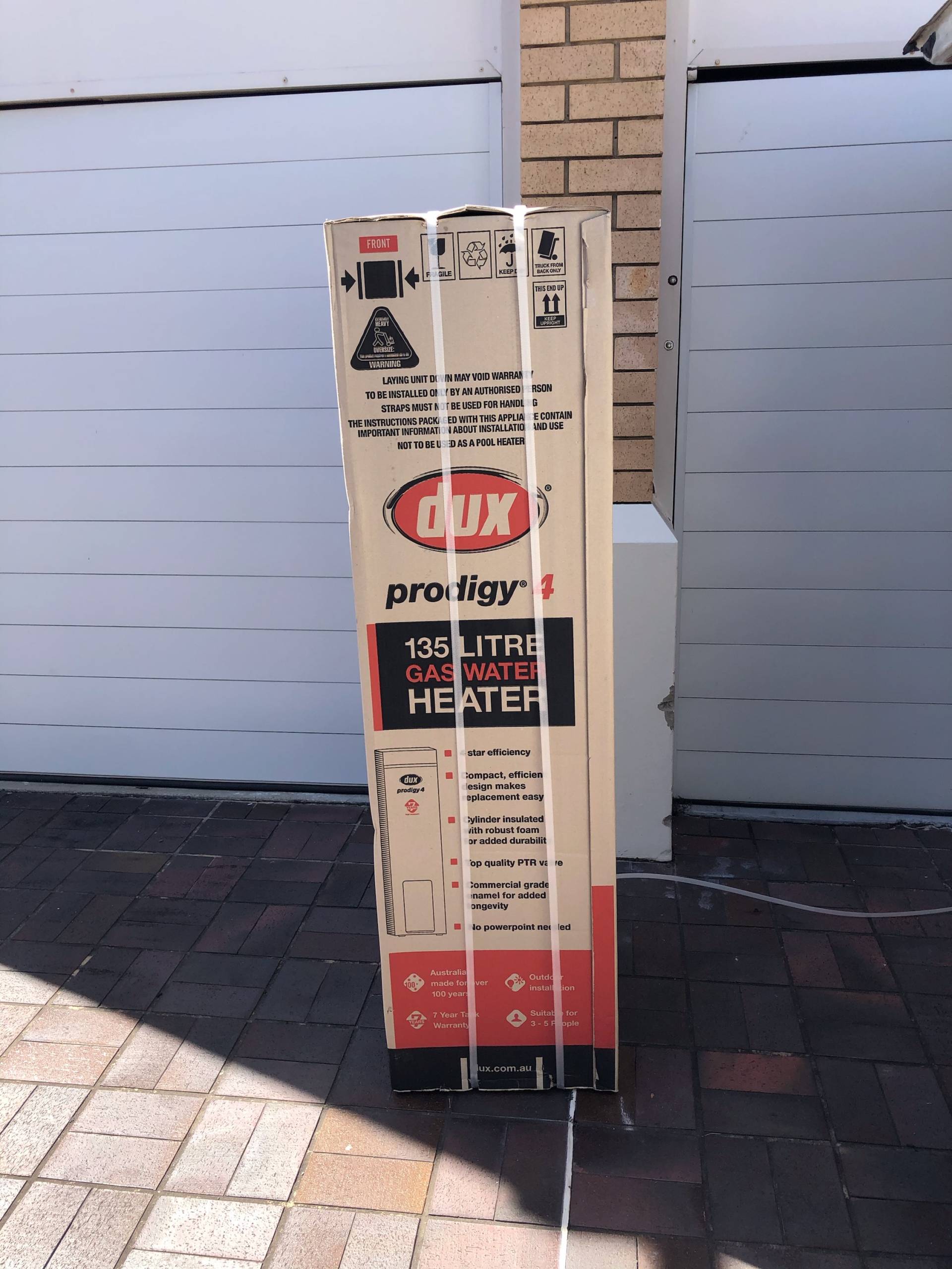 Another satisfied Hot Water Warehouse customer with a Dux 135ZB4N 135ltr 4 star external gas Hot Water System delivery supplied in less than 2 hours!